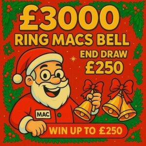 Simple RING Macs bell and win £250 cash plus lots of other instant wins to be won, plus an end draw of £250