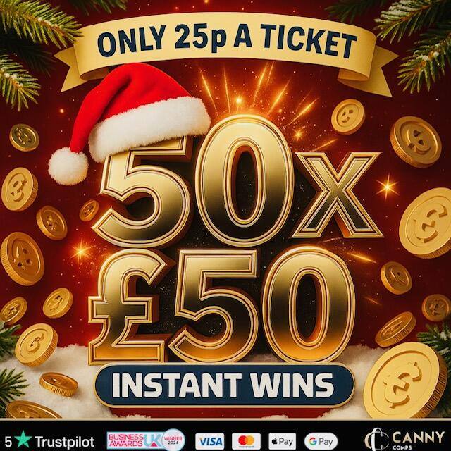 50 x instant wins worth £2500 waiting to be won for only 25p a ticket