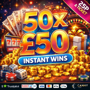 50 x instant wins worth £2500 waiting to be won for only 25p a ticket